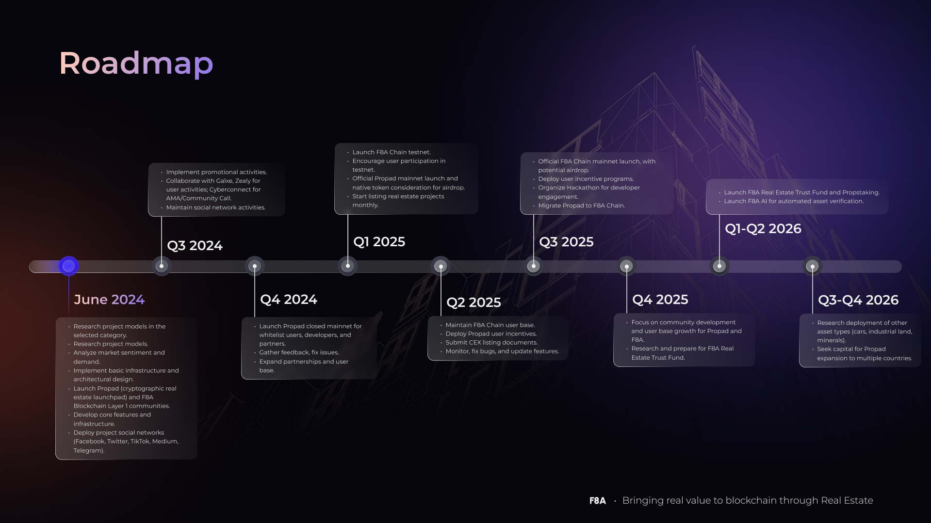 * Introducing and launching the F8A Blockchain Layer 1 community (Blockchain specifically serves the encryption and trading of crypto assets).&#x20;